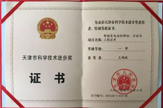 近日,天津市召开2016年度科学技术奖励大会,本市共有189个项目获奖。其中,一等奖23项、二等奖57项、三等奖109项,涵盖了自然科学奖、技术发明奖和科技进步奖等多个种类。由我公司申报的《智能变电站的理论、方法与工程应用》项目荣获天津市科学技术进步一等奖,董事长刘柏呈、创新中心副总经理王鸿斌分别荣获天津市科学技术进步个人一等奖。